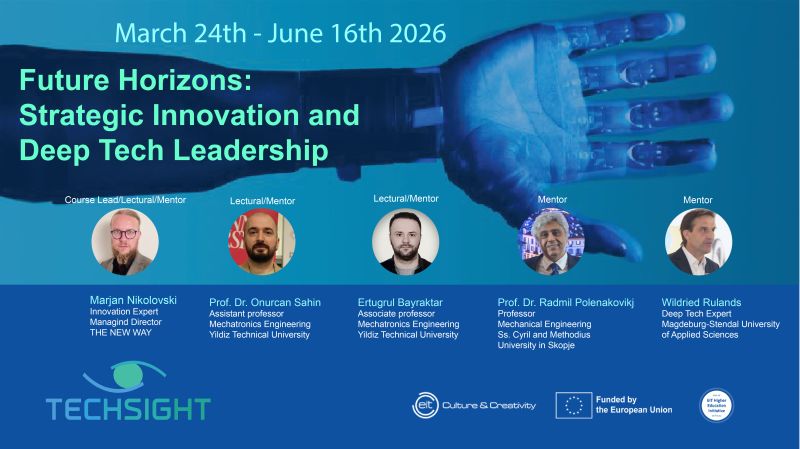 First, our partner, from Denmark, form the TECHSIGHT Project, Mr. MarjanNikolovski, shared valuable insights on strategic foresight and horizon-scanning methodologies, explaining how our students can recognize and anticipate future trends in deep tech.